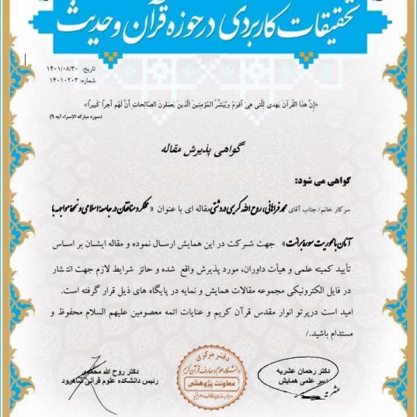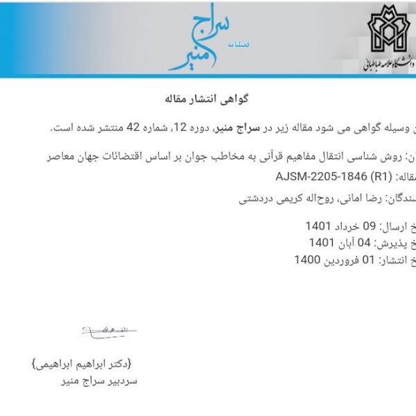 مقاله “روششناسی انتقال مفاهیم قرآنی به مخاطب جوان براساس اقتضائات جهان معاصر”