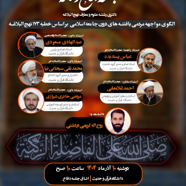 جلسه دفاع رساله دکتری رشته علوم و معارف نهجالبلاغه